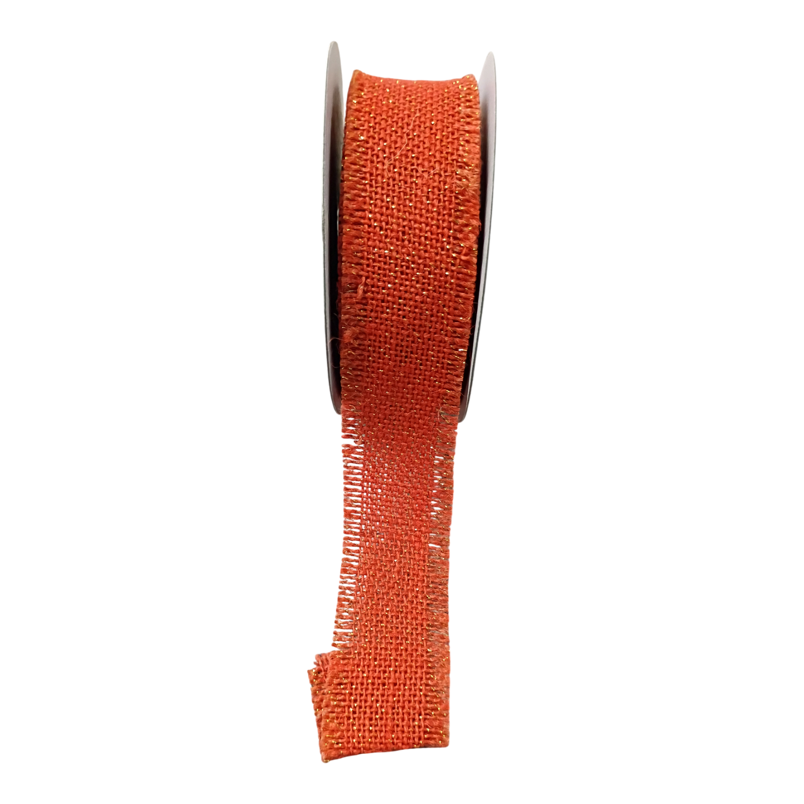 Brighten your designs with this vibrant orange burlap ribbon accented with subtle gold glitter threads. The natural texture of burlap pairs beautifully with the festive shimmer, creating a perfect balance of rustic and refined. Ideal for wreaths, bows, floral arrangements, gift wrapping, and seasonal décor, especially fall and holiday themes.