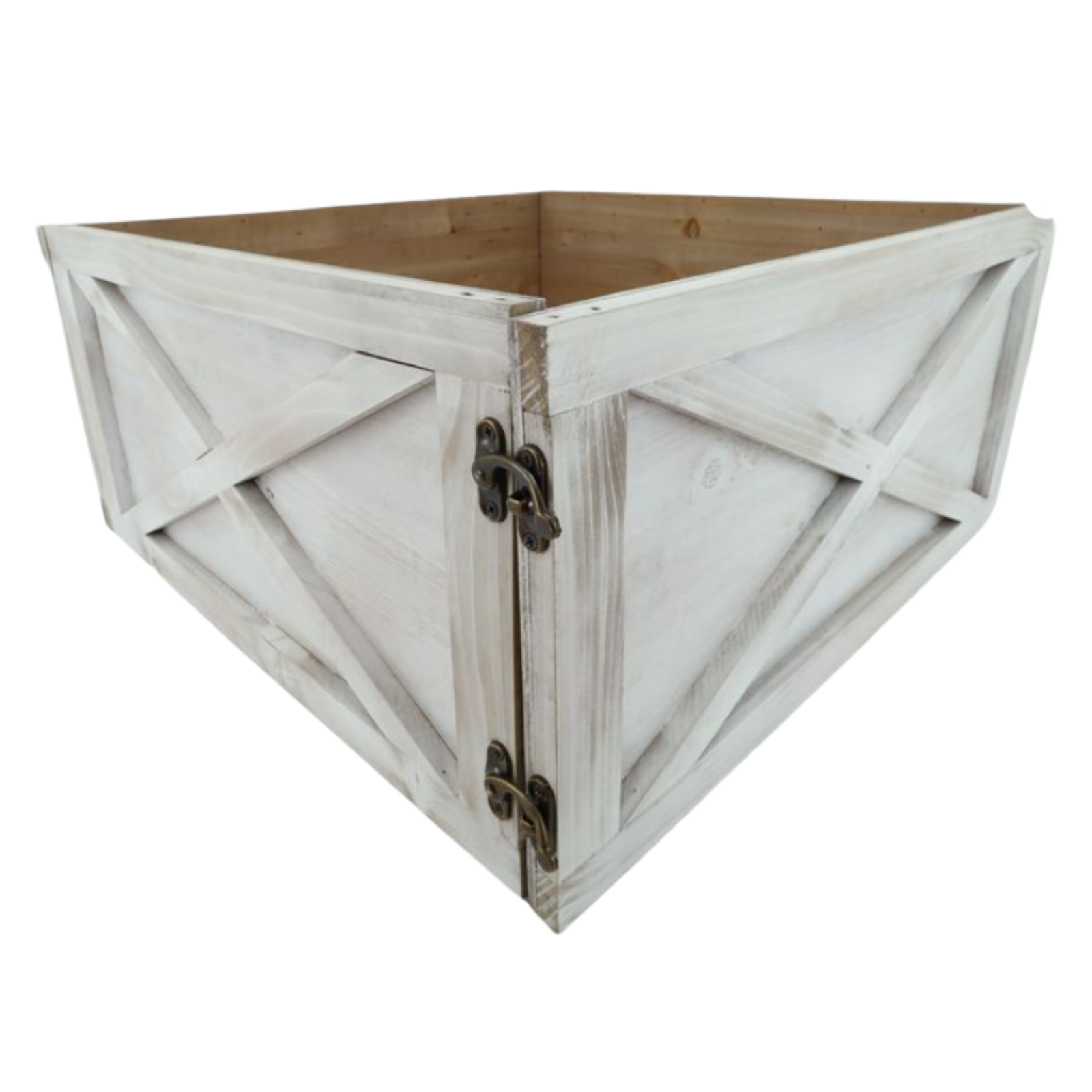 Add rustic charm to your holiday decor with this whitewash wood tree collar. Its farmhouse-inspired design neatly conceals tree stands while creating a polished, festive look.
