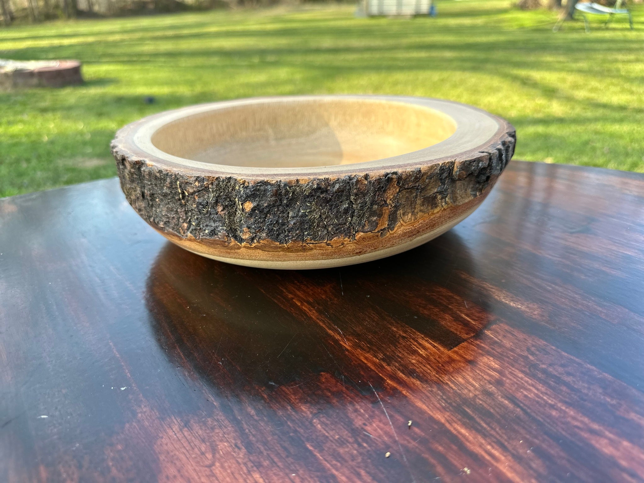This unique acacia wood bowl features a rustic bark edge, adding a natural and organic touch to your table setting. The smooth, polished interior contrasts beautifully with the textured bark exterior, showcasing the wood's raw beauty. Perfect for serving snacks, fruits, or as a decorative centerpiece, this bowl brings warmth and charm to any space. Crafted from durable, eco-friendly acacia wood, each piece is one-of-a-kind and perfect for both casual and formal settings.