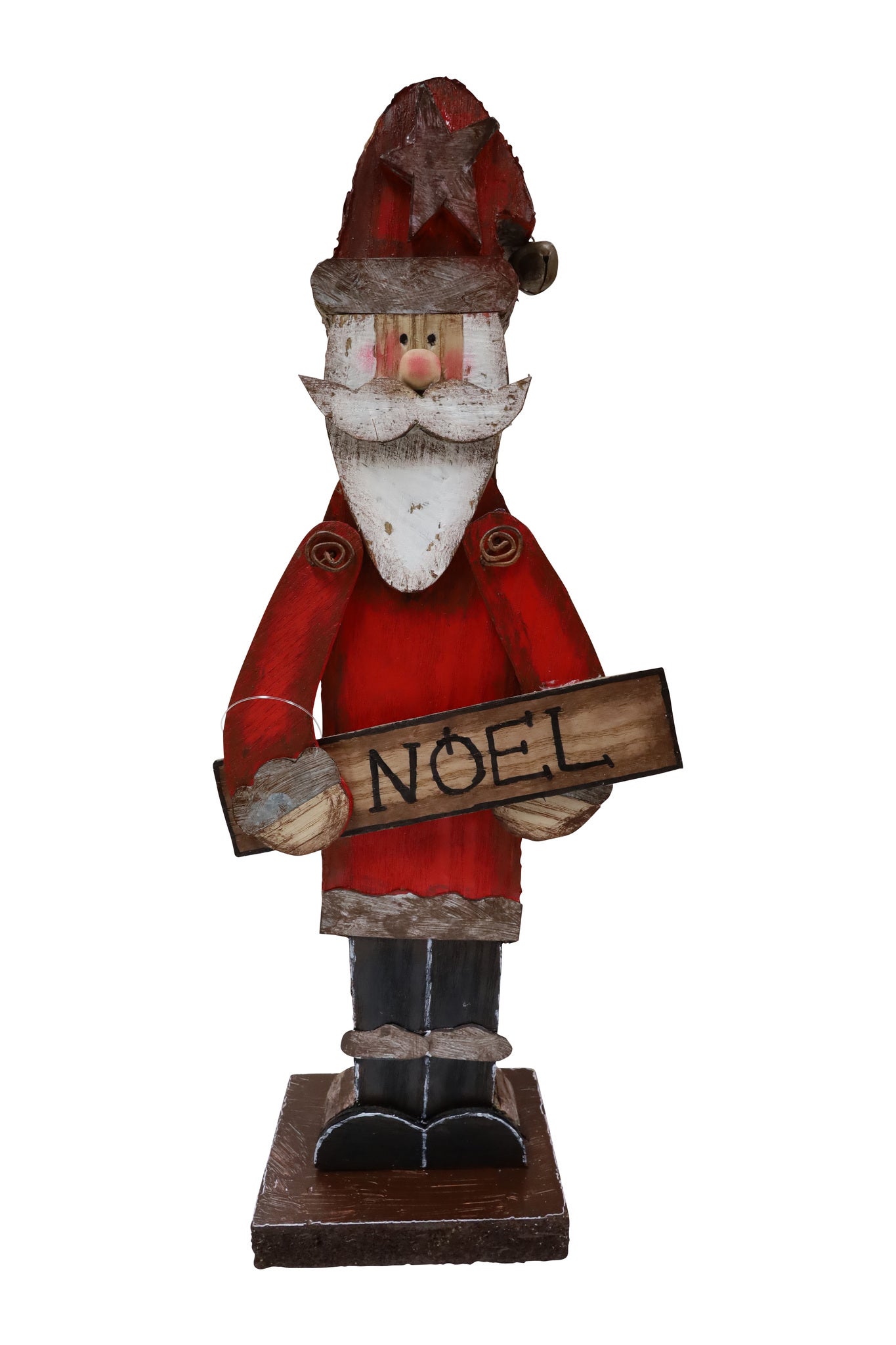 This rustic Santa figurine holds a "Noel" sign, bringing a warm and festive touch to your Christmas decor. Perfect for shelves, mantels, or tabletops, it adds classic holiday charm with its handcrafted look and seasonal details.