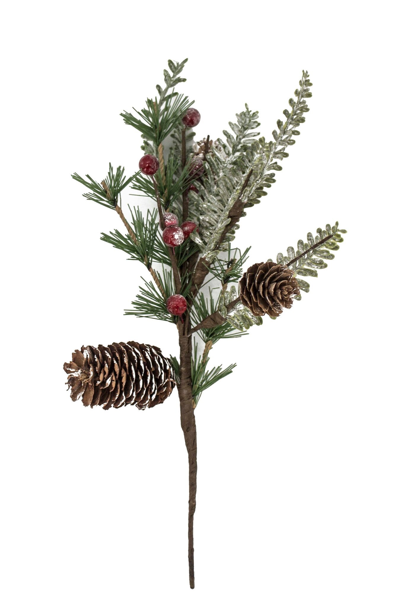 Add a natural touch to your holiday decor with this festive needle pick featuring lifelike greenery, pinecones, and red berry accents. Perfect for enhancing wreaths, garlands, centerpieces, or Christmas tree displays, this versatile pick brings warmth and seasonal charm to any setting. Easy to style and mix with other holiday florals, its a must-have accent piece for your winter arrangements.