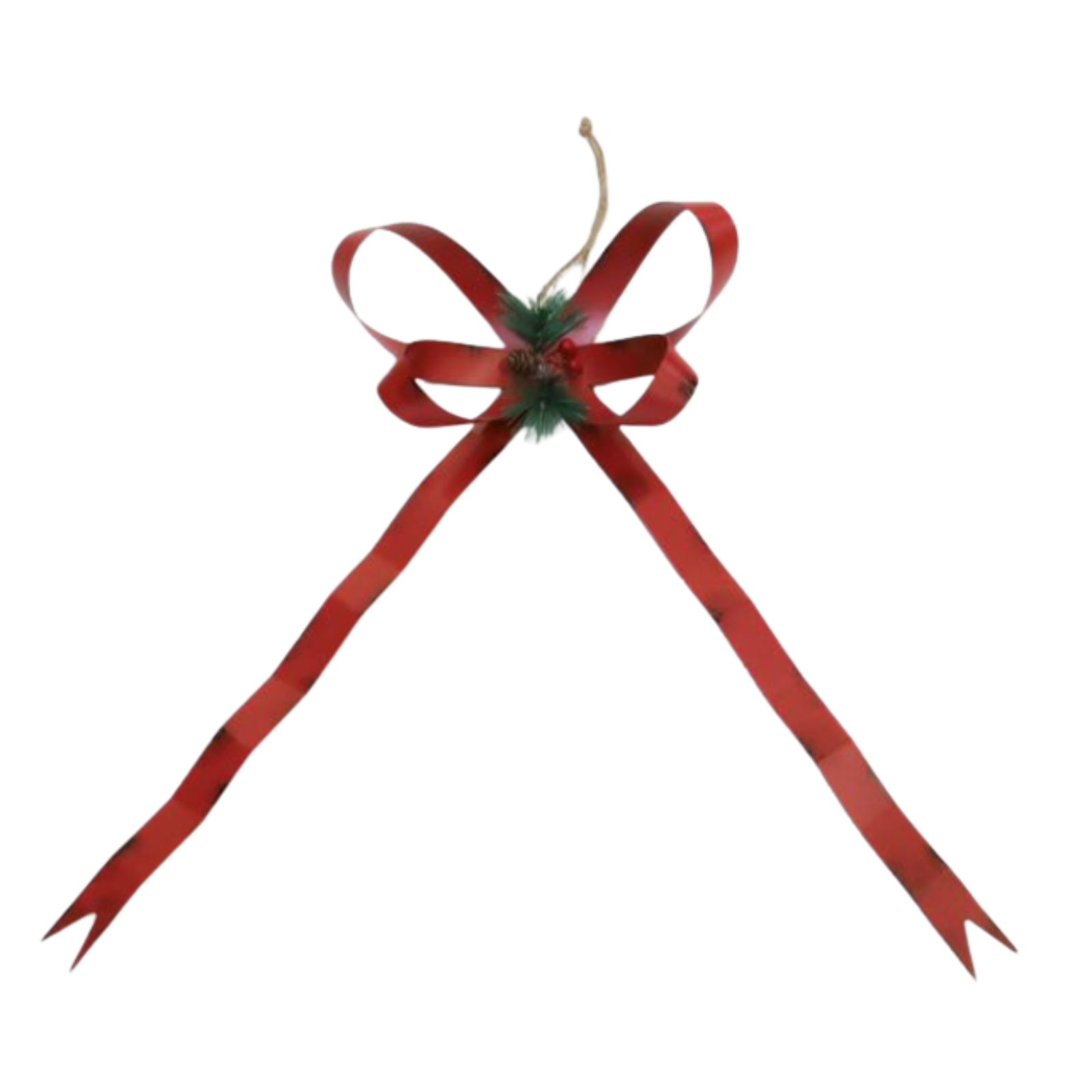 Make a bold statement with this jumbo metal Christmas bow ornament. Featuring a classic red bow design accented with faux greenery and berries at the center, it adds a festive and elegant touch to doors, walls, trees, or large displays. Durable and eye-catching, this oversized ornament brings holiday cheer to any décor style.