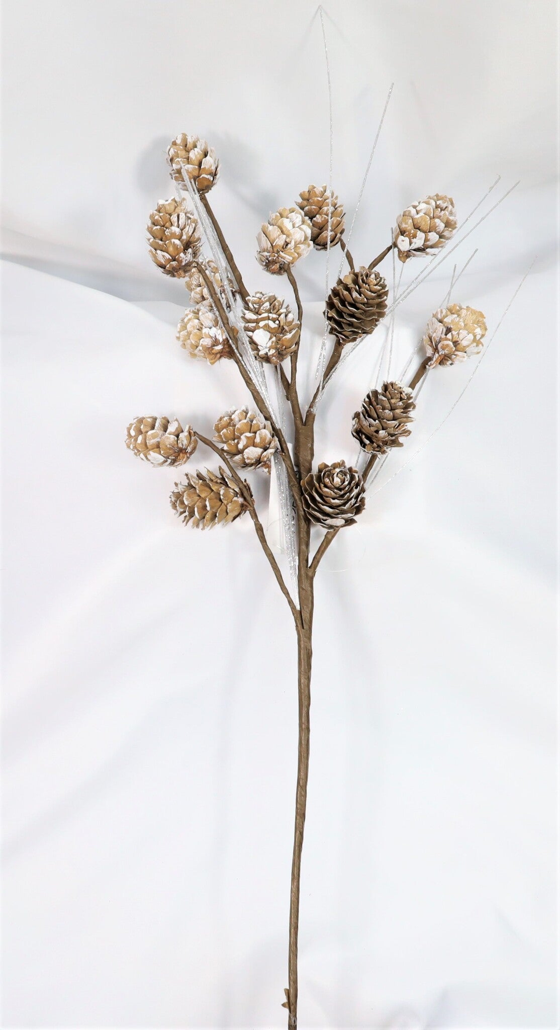 Bring a touch of frosted elegance to your holiday creations with this 17.7-inch pinecone spray. Featuring natural pinecones dusted with snowy flocking and accented with sparkling silver glitter branches, it blends rustic charm with festive shimmer. Perfect for wreaths, garlands, or tabletop arrangements, this spray adds a wintry woodland feel to any seasonal décor.