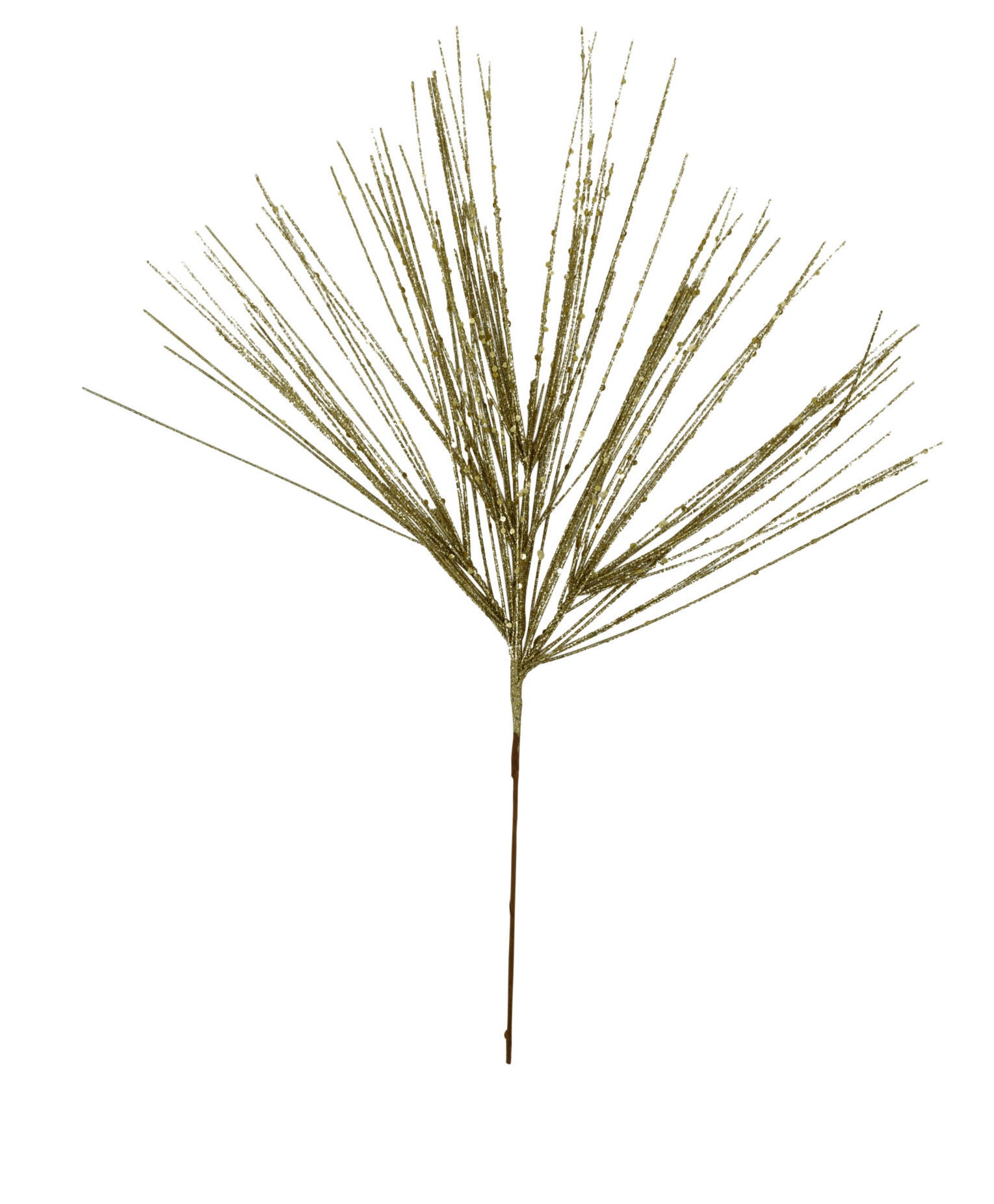 Add a sparkling touch to your holiday décor with this glitter needle spray. Featuring long, slender metallic branches dusted with glitter, it brings shimmer and texture to trees, garlands, and floral arrangements. Perfect for creating a festive, elegant look with minimal effort.