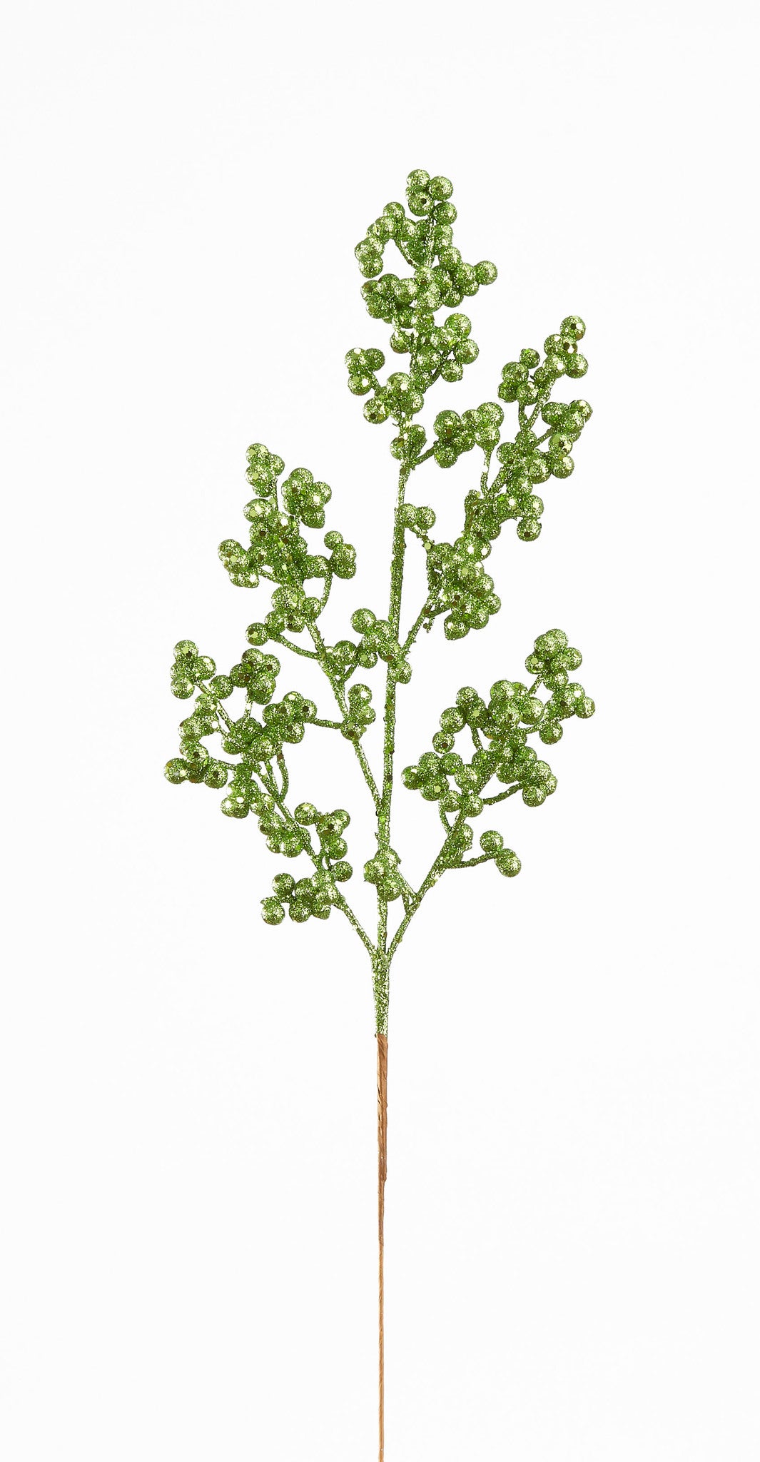Add a festive sparkle to your holiday décor with this 18" glitter berry spray. Featuring clusters of shimmering berries, its perfect for accenting wreaths, garlands, floral arrangements, or Christmas trees. A simple yet striking piece to bring color and shine to any seasonal display.