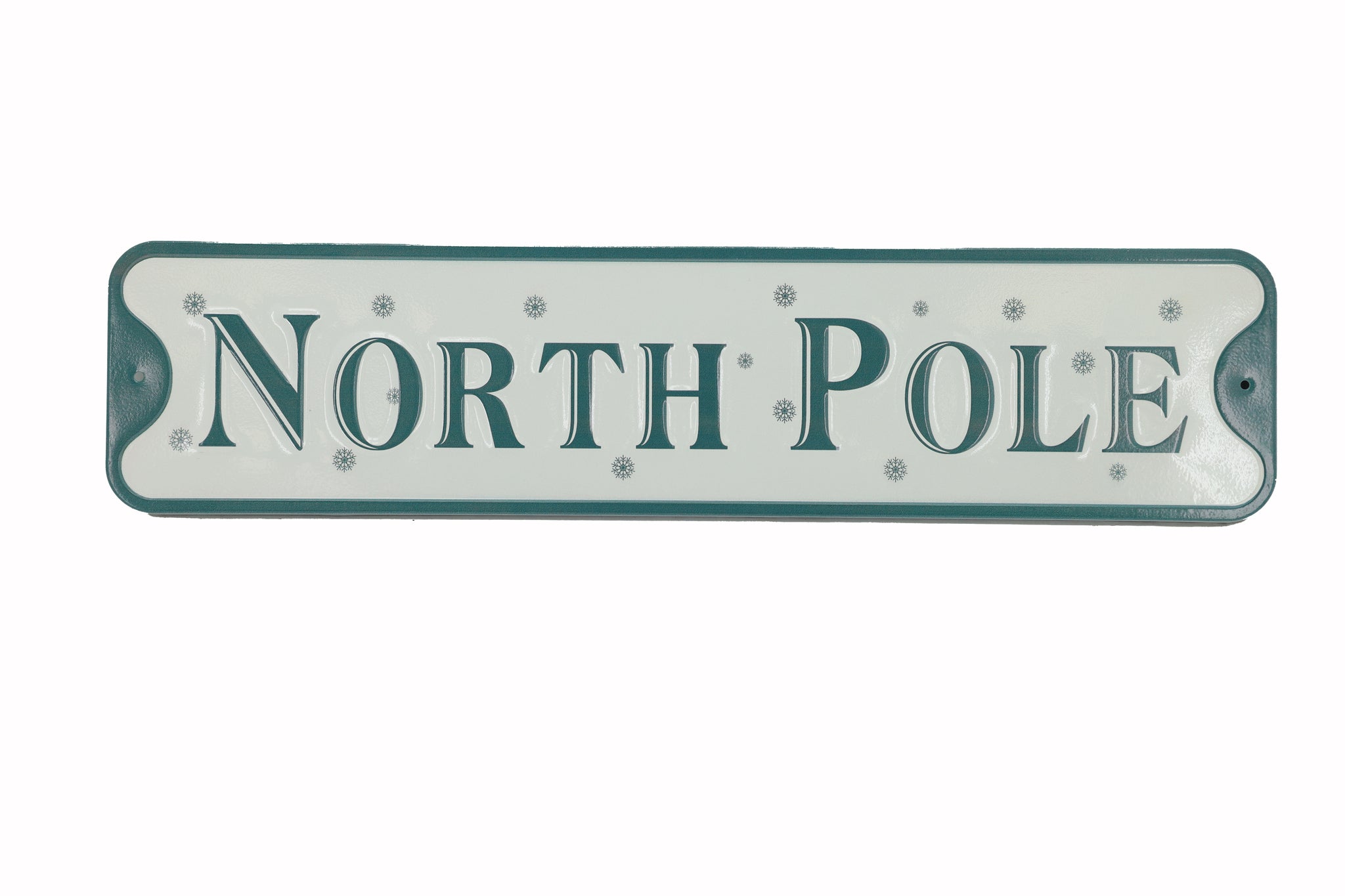 Add a touch of wintry magic to your holiday decor with this charming "North Pole" metal plaque. The classic green lettering and delicate snowflake accents make it perfect for hanging in an entryway, over a mantel, or as part of your seasonal wall display.