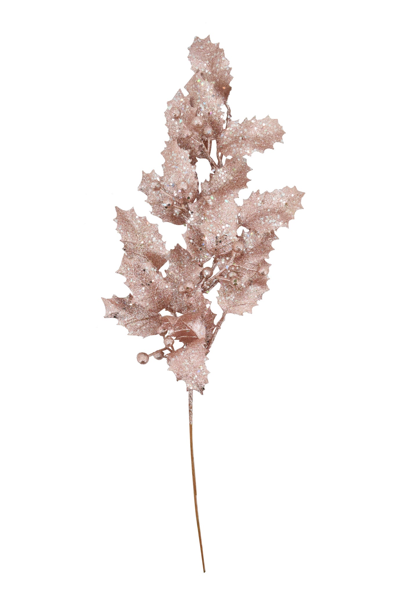 Bring festive sparkle to your holiday designs with this glittered holly spray accented with berries. Its bold finish adds shine and texture, making it perfect for Christmas trees, wreaths, and centerpieces. A seasonal favorite for adding a classic holiday touch with extra shimmer.