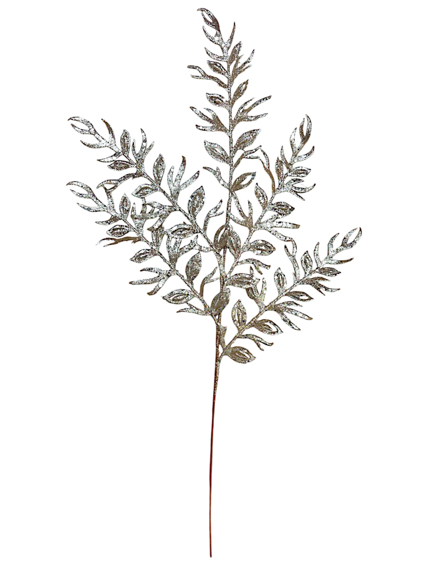 Add a bold and sparkling accent to your holiday displays with this 26" glitter leaf spray. Its detailed leaves are coated in shimmering glitter, bringing eye-catching texture to trees, wreaths, and centerpieces. A versatile piece perfect for elevating festive arrangements.