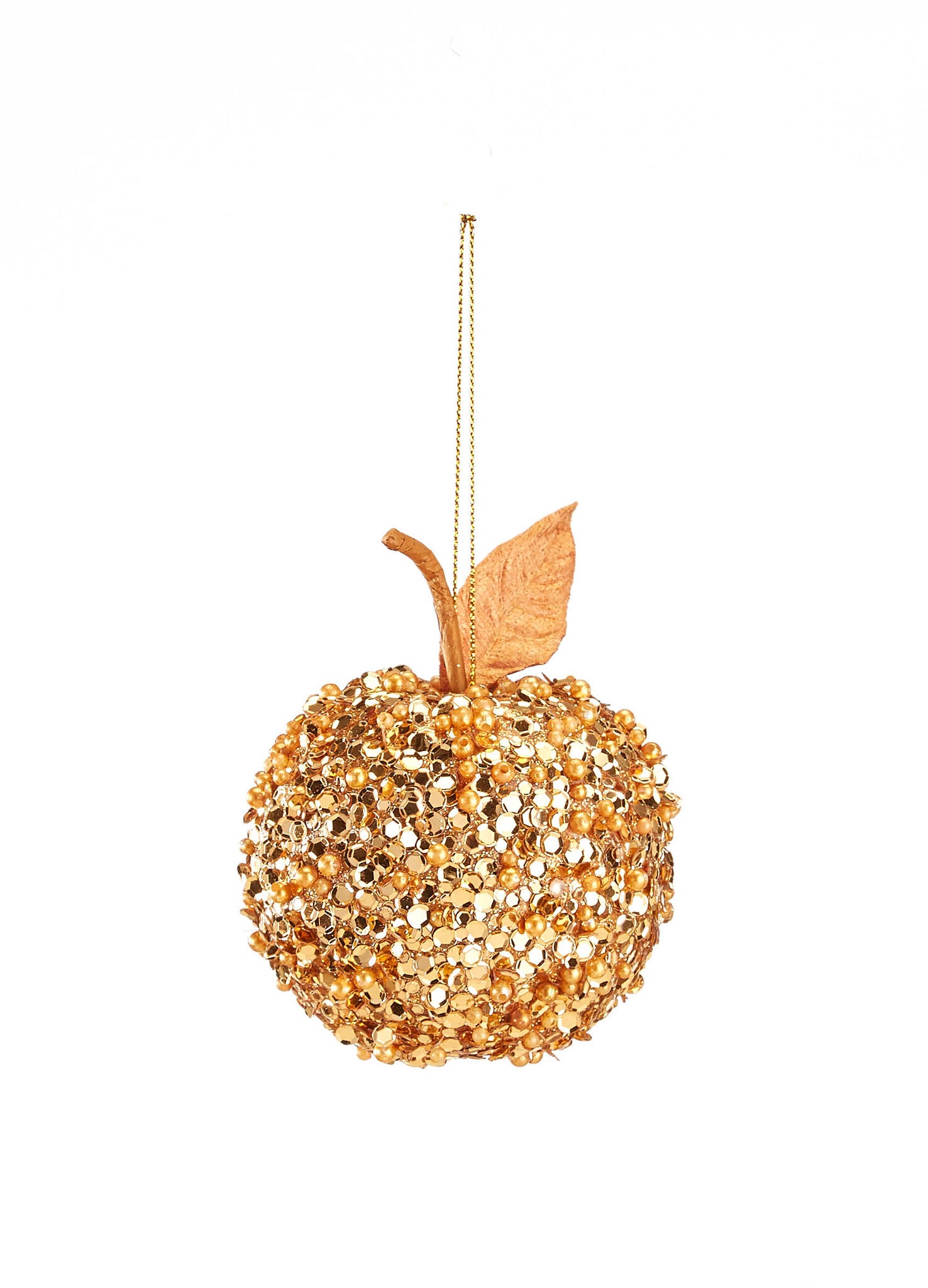 Add a unique touch to your holiday décor with this glitter and bead apple ornament. The sparkling finish and textured accents bring a festive shine, making it perfect for trees, wreaths, or table displays. Its playful shape adds charm and variety to any seasonal collection.