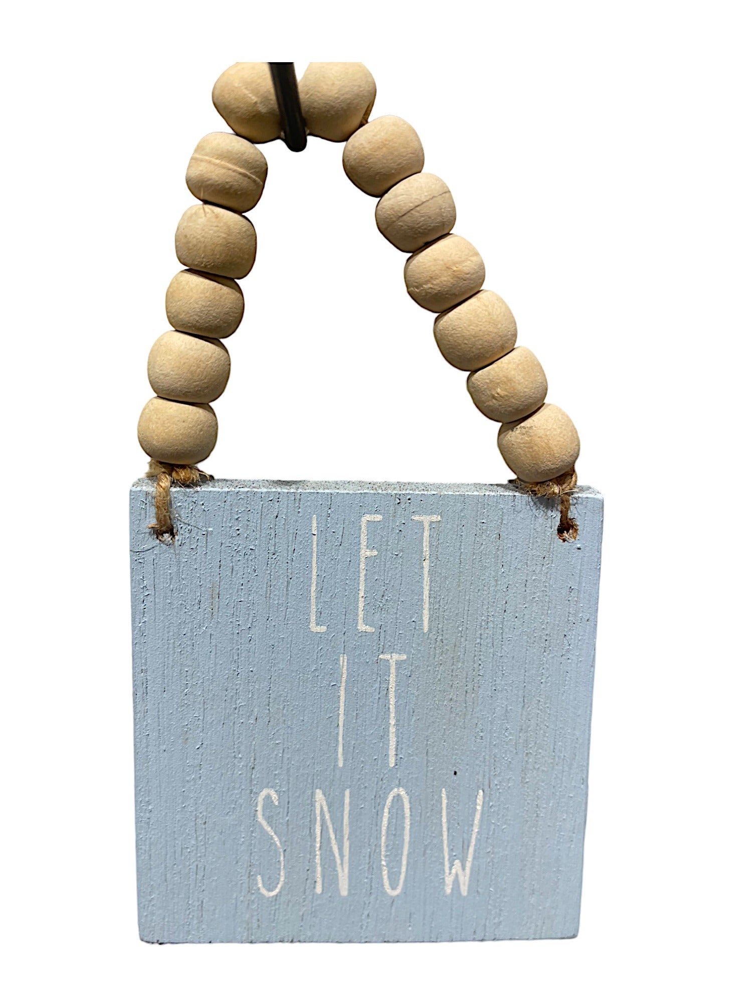 Bring a touch of winter charm to your tree with this 3.5-inch "Let it Snow" ornament, featuring a beaded hanger for rustic flair. Available in assorted colors, its perfect for adding variety and texture to your holiday décor.