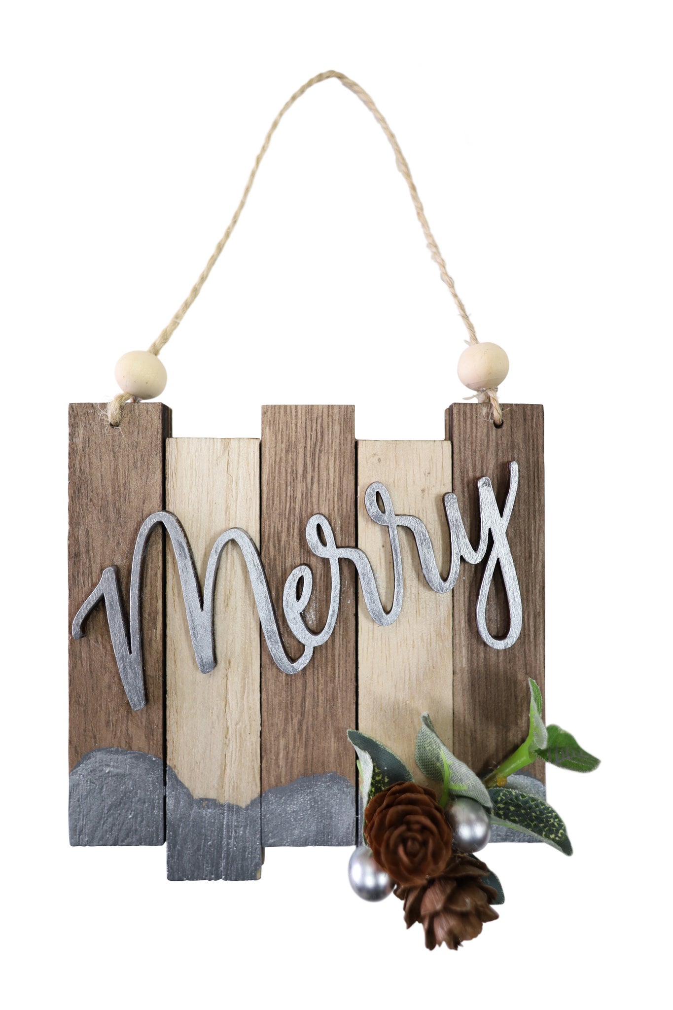 Bring rustic charm to your holiday dcor with this wooden Merry ornament. Designed with a natural wood plank background, metallic script lettering, and festive pinecone and greenery accents, it blends cozy farmhouse style with seasonal cheer. Perfect for trees, wreaths, or garlands, it adds a warm and welcoming touch to Christmas decorating.