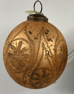 This vintage-inspired glass ornament features an etched floral design with an antique gold finish. A timeless piece that adds old-world elegance and charm to holiday trees, garlands, and seasonal décor.