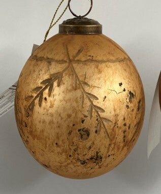 This elegant glass ornament features a wheat-etched design with a warm antique gold finish. Perfect for adding rustic sophistication to holiday trees, garlands, and wreaths.