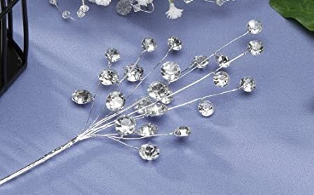 Adorn your wedding or special event decor with this rhinestone pick. This pick features round, faceted rhinestones with a wire stem.
