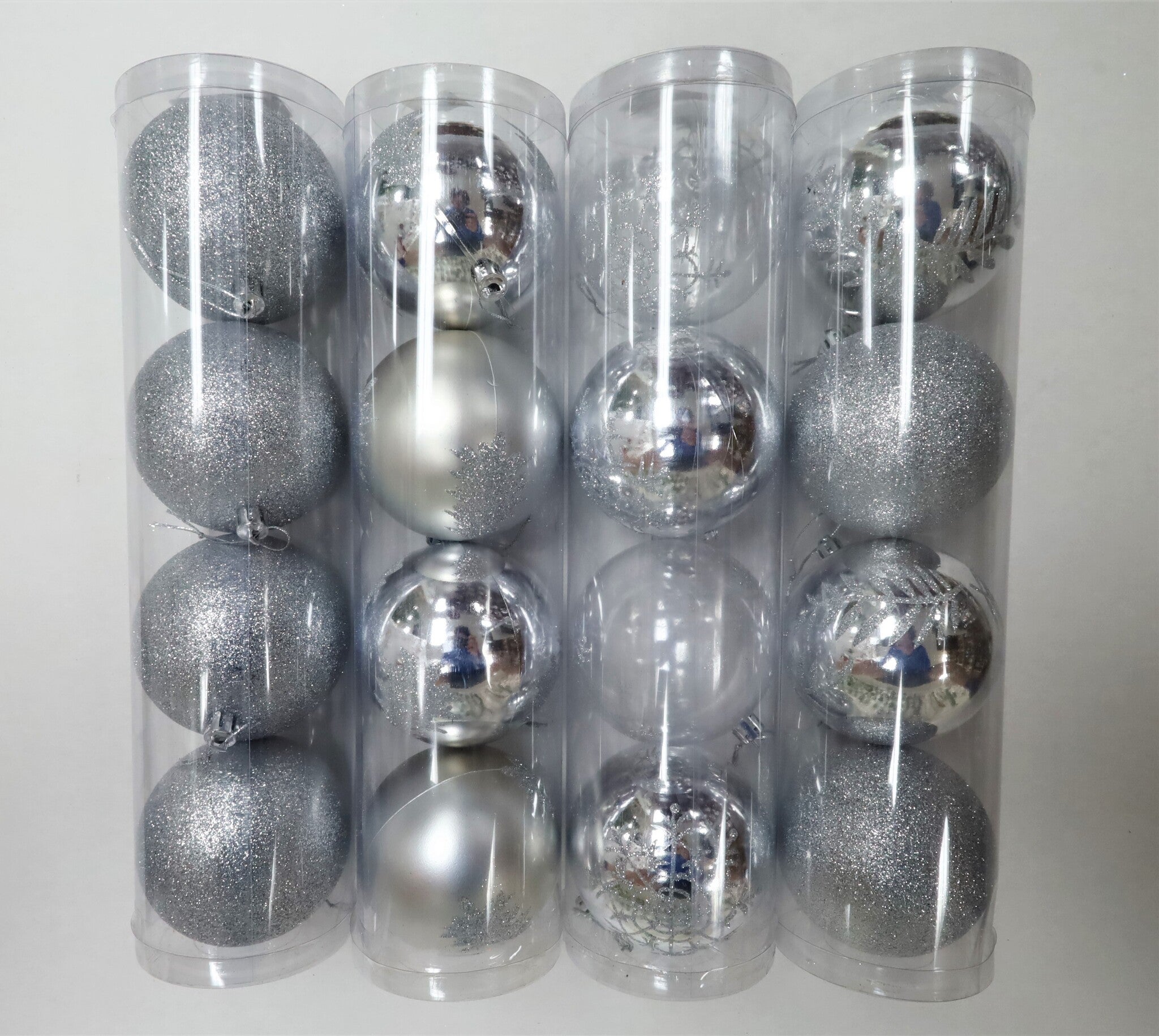Add classic shine to your holiday décor with this set of plastic ball ornaments. Featuring a mix of finishes from glittered to matte and glossy, these ornaments bring variety and sparkle to Christmas trees, wreaths, or garlands. Durable and lightweight, this 4-piece set comes packaged in a clear tube for easy storage or gifting.
