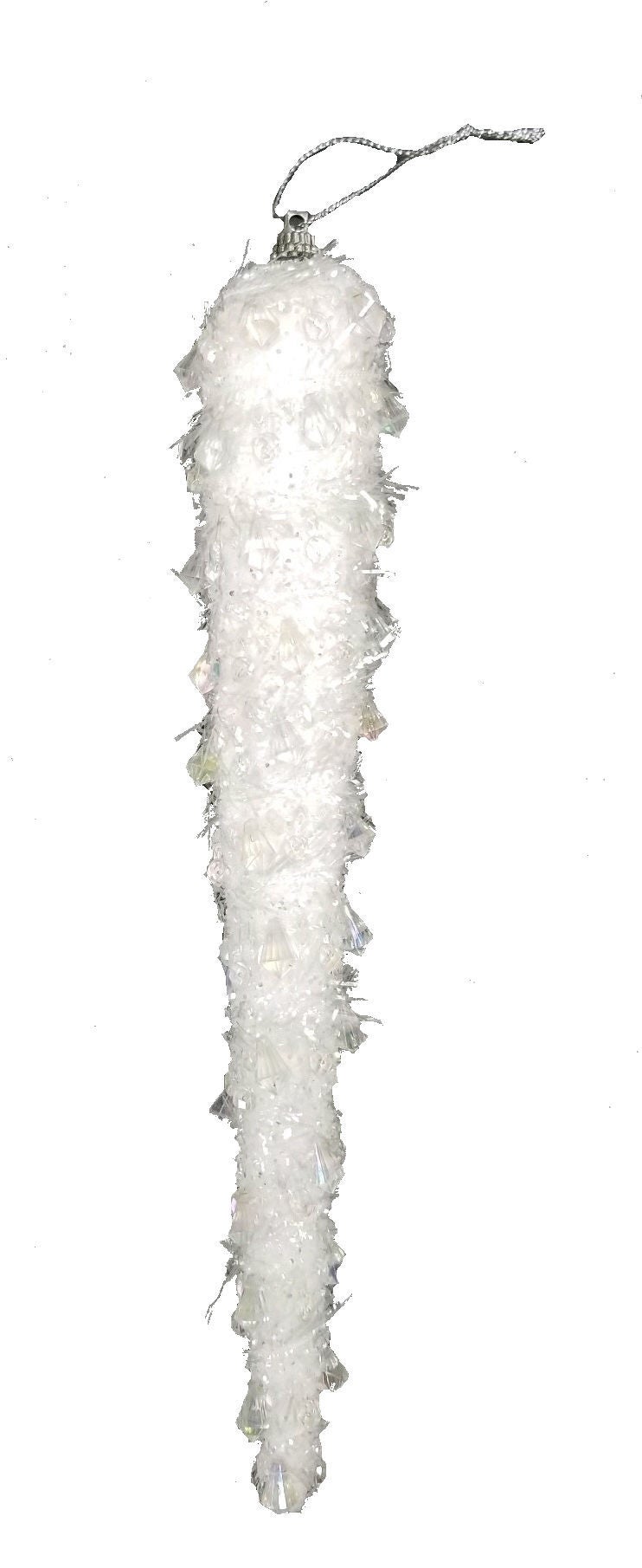 Create a winter wonderland look with this shimmering 9.75" icicle ornament. Its frosted finish and textured design capture the beauty of real ice, making it a striking addition to Christmas trees, garlands, or holiday displays. Lightweight and easy to hang, it adds an elegant, wintry touch to seasonal décor.