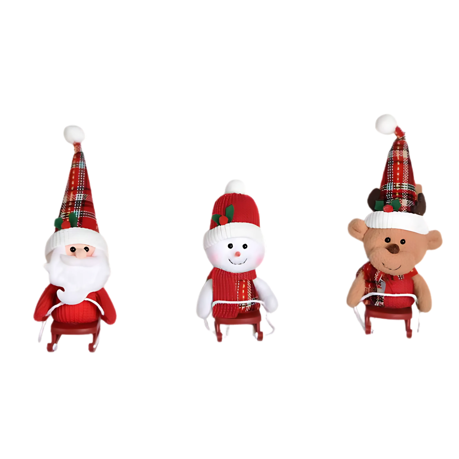Add a dash of holiday cheer to your tree with this set of 3 assorted sled ornaments featuring Santa, a snowman, and a reindeer. Each festive character is dressed in cozy knitwear and seated on a mini red sled, bringing whimsical charm to wreaths, garlands, or Christmas trees. A fun and playful accent for your holiday decor!