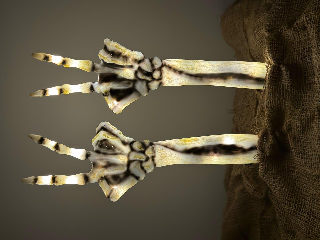 Turn up the fright and the fun with these battery-operated skeleton hand stakes, each flashing the iconic rock on sign in glowing LED light. Perfect for lining walkways, garden beds, or indoor party setups, these spooky hands bring bold Halloween energy to any scene. Easy to stake and powerno cords required!