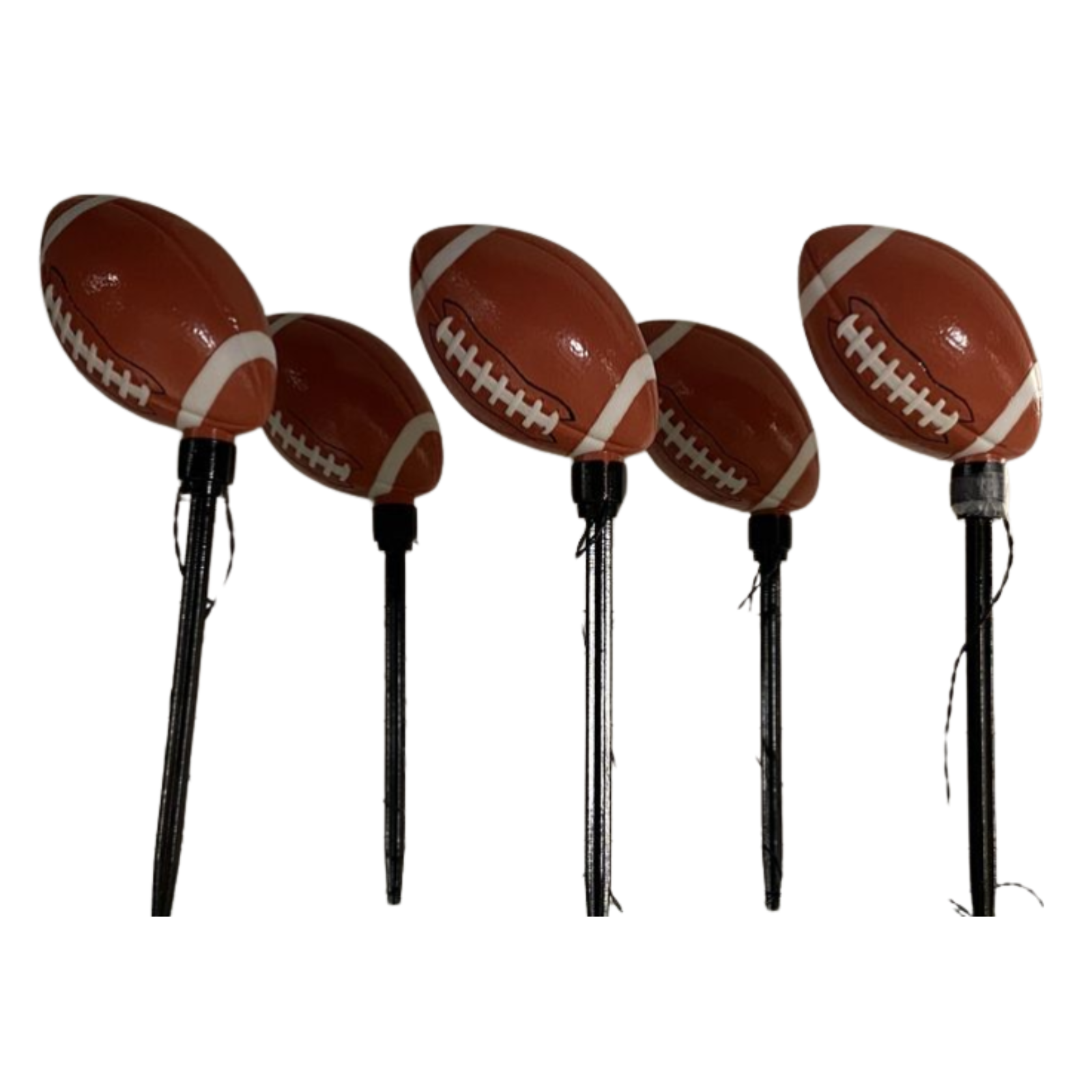 Light the way to game day with these 5-count solar football pathway markers! Each marker features a realistic football design on a sturdy stake, perfect for lining walkways, driveways, or tailgate setups. Solar-powered for easy, cordless lightingideal for sports fans and outdoor entertaining.
